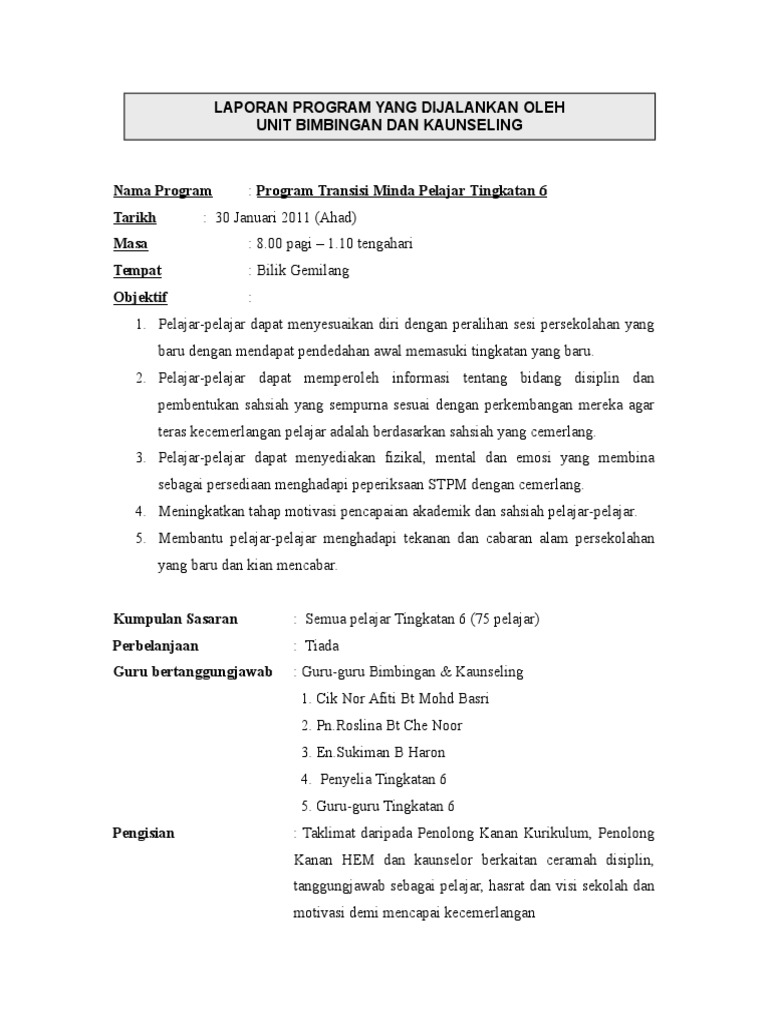 Laporan Program Untuk Perkongsian Guru Bimbingan Dan Kaunseling Pdf